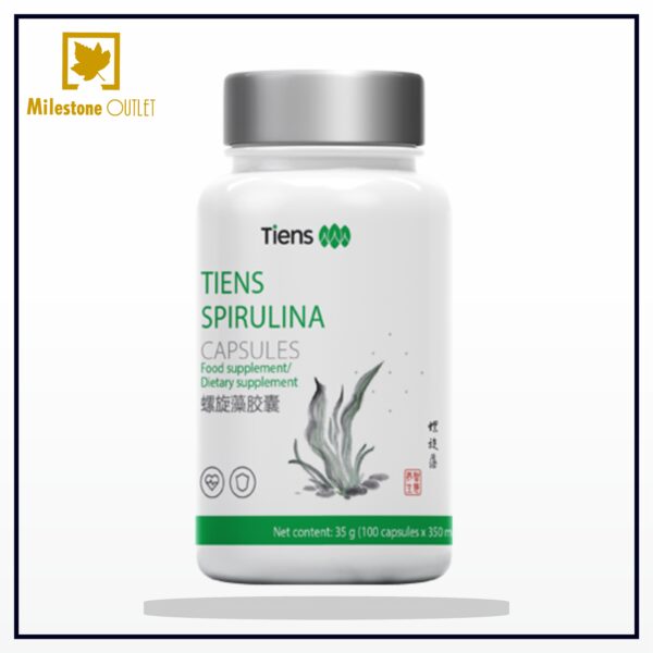 Each capsule contains- Spirulina 24250mg, Gelatin 6.25mg, Magnesium stearate 1.25mg